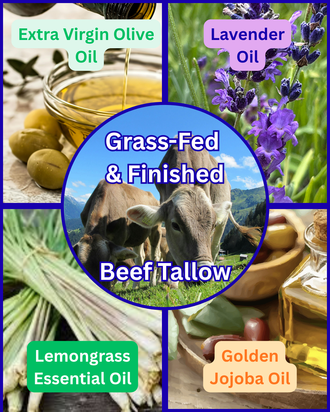 ✅ Skin-Compatible Moisture – Tallow closely resembles human sebum, making it perfect for sensitive, dry, or stressed skin.